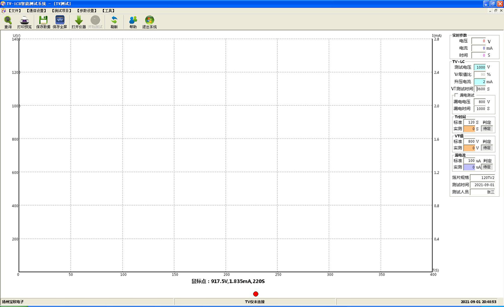 TV-1CH型智能TV测试仪是采用原日本铝箔化成电源改进的电源电路及单片机外围电路,全电脑软件智能控制模式,实现对化成铝阳极箔TV特性及电解液闪火电压等综合电性能的自动检测。不需要人工进行干预,软件具有操作简单、直观、快捷的特点,领先于国内同类检测仪器新产品。