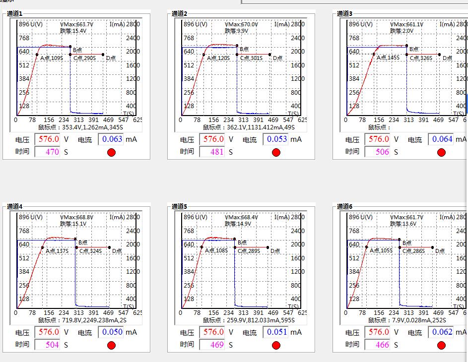 5. 曲线显示。数据采用曲线显示,电压,电流直观显示耐压升压情况。
