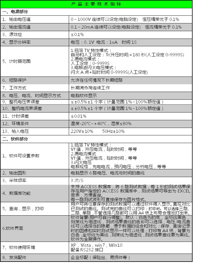 1. 铝箔,阳极箔耐压测试,漏电流检测