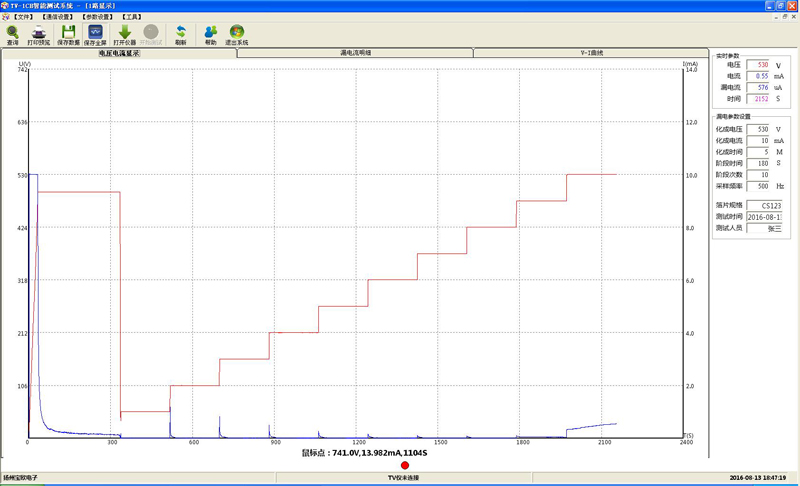 测试结束后,系统将每一个恒压阶段的最后2秒电流所有采样值进行平均计算后得到该段的漏电值,最后将每一阶段的漏